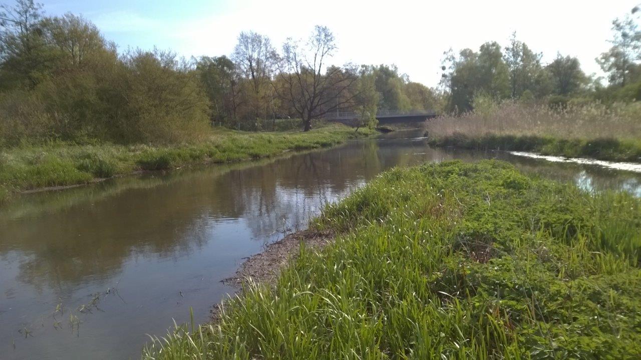 Einsatz bei einseitiger Befahrungsmöglichkeit durch den Auslegearm von der gegenüberliegenden Seite. Hier: Schlegelmäher, auch mit Mäh-Hark-Kombination möglich